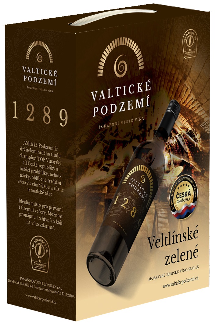 AnnoVino 1289 VALTICKÉ PODZEMÍ 3L VínoBox- Veltlínské Zelené- Biele, Suché