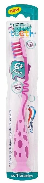 Zubná kefka Aquafresh® my Big Teeth bola špeciálne navrhnutá expertmi na ústnu hygienu pre deti od 6 rokov. Rôzne dlhé štetiny pomáhajú čistiť kombináciu mliečnych, chýbajúcich a stálych zubov. Atraktívny vzhľad hlavy kefky motivuje deti k pravidelnému čisteniu zubov. Produkt je vyrobený vo viacerých farebných prevedeniach.